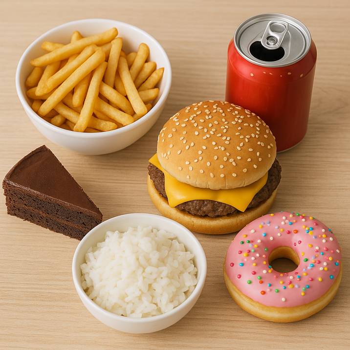 | 설탕이 많은 음식 | 과자, 케이크, 탄산음료 |