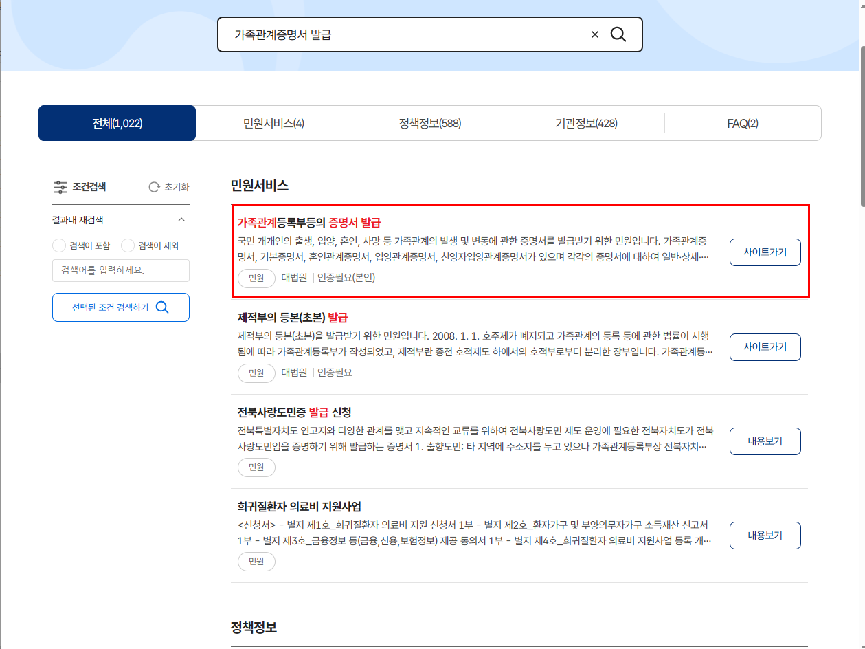 → “가족관계증명서” 또는 “혼인관계증명서” 입력
