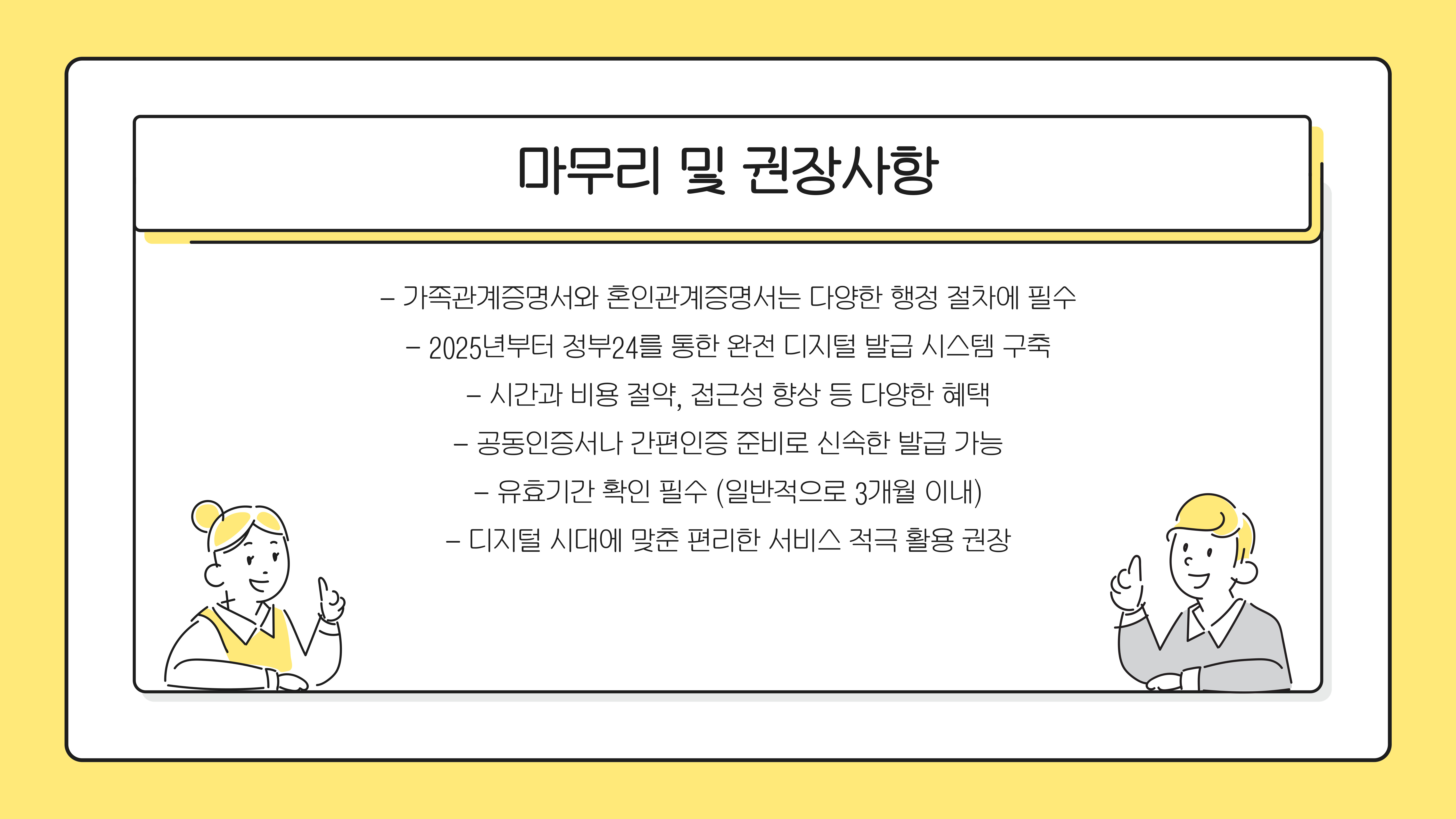 가족관계증명서와 혼인관계증명서는 다양한 상황에서 필수로 제출해야 하는 기본 민원 서류입니다.