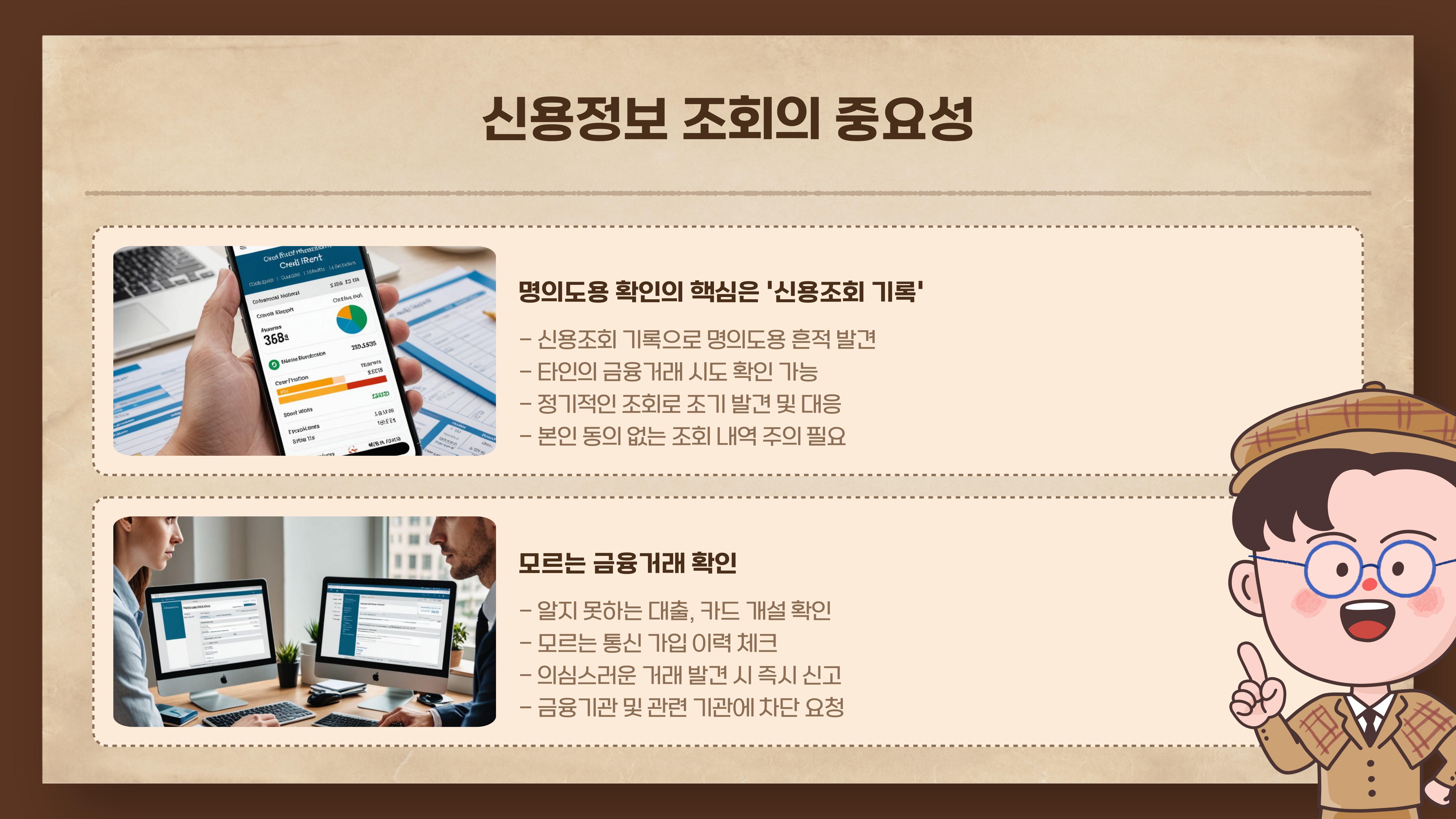 💡 명의도용 확인의 핵심은 ‘신용조회 기록’