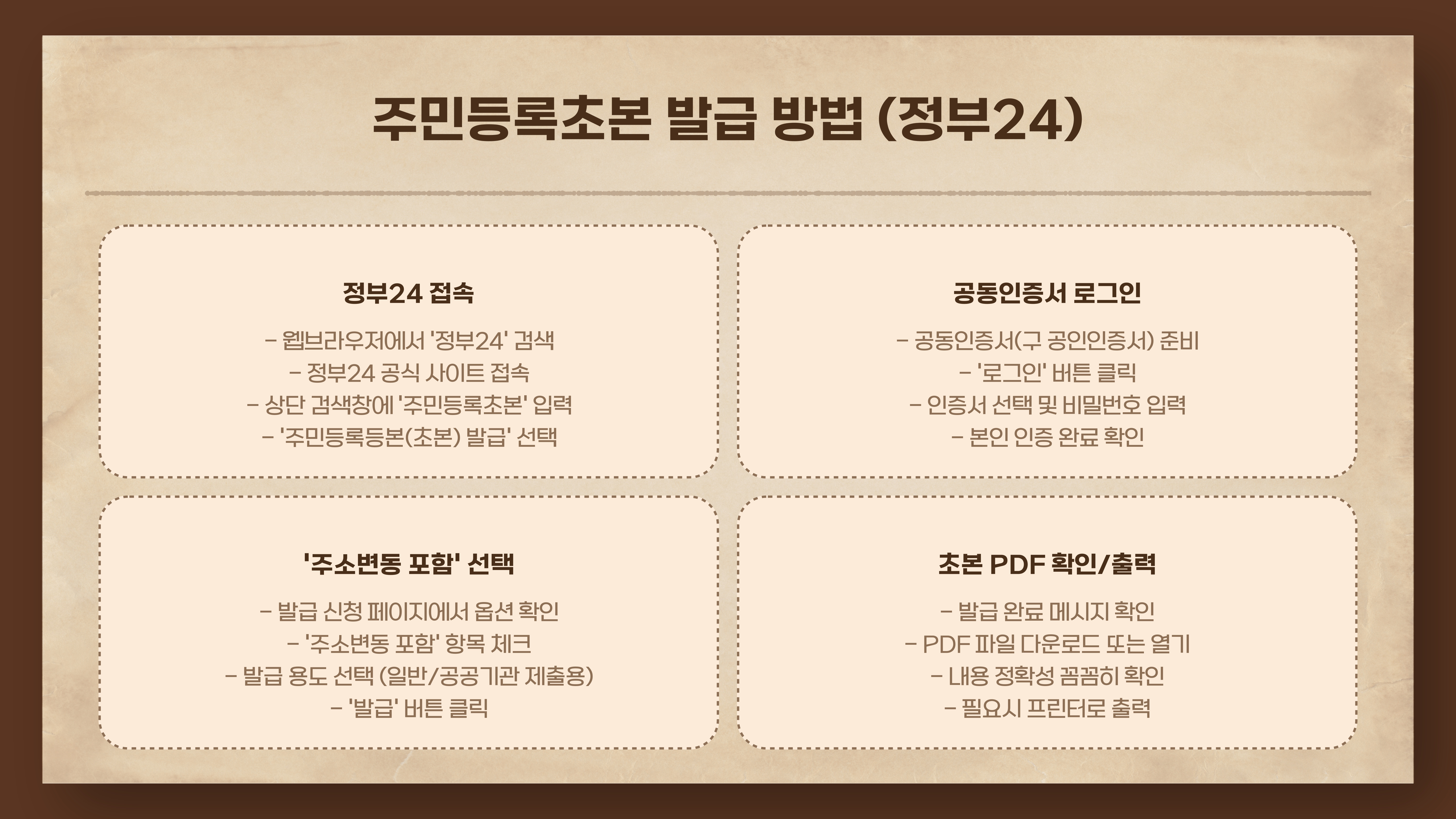 📌 TIP: 초본은 최근 5년치 주소 이력을 확인할 수 있으니, 1년에 한 번씩 확인해두는 게 좋습니다.