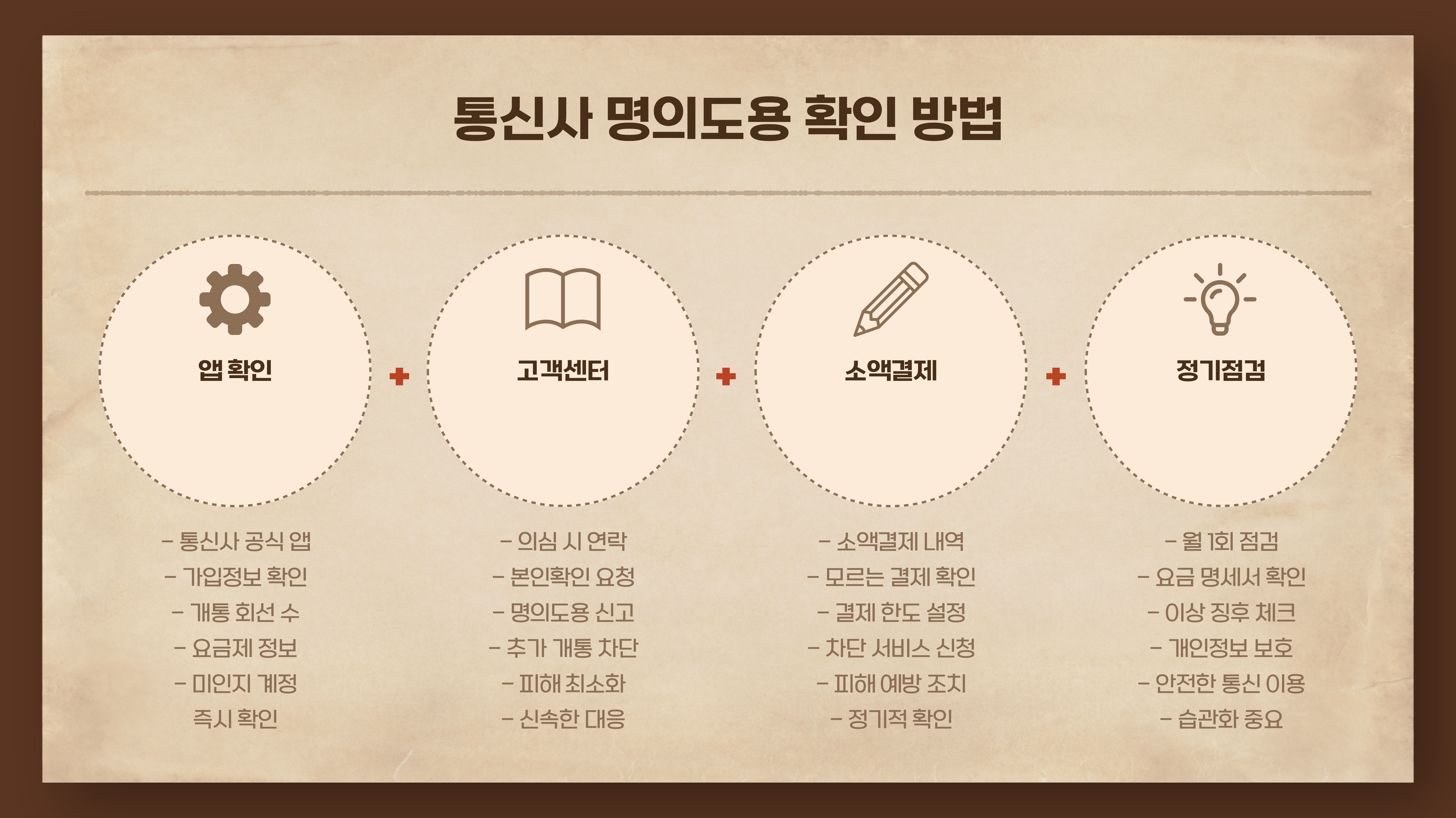 ✔️ 통신사 명의도용은 휴대폰 개통 후 소액결제 사기로 이어지기 쉬우니, 특히 주의가 필요합니다.