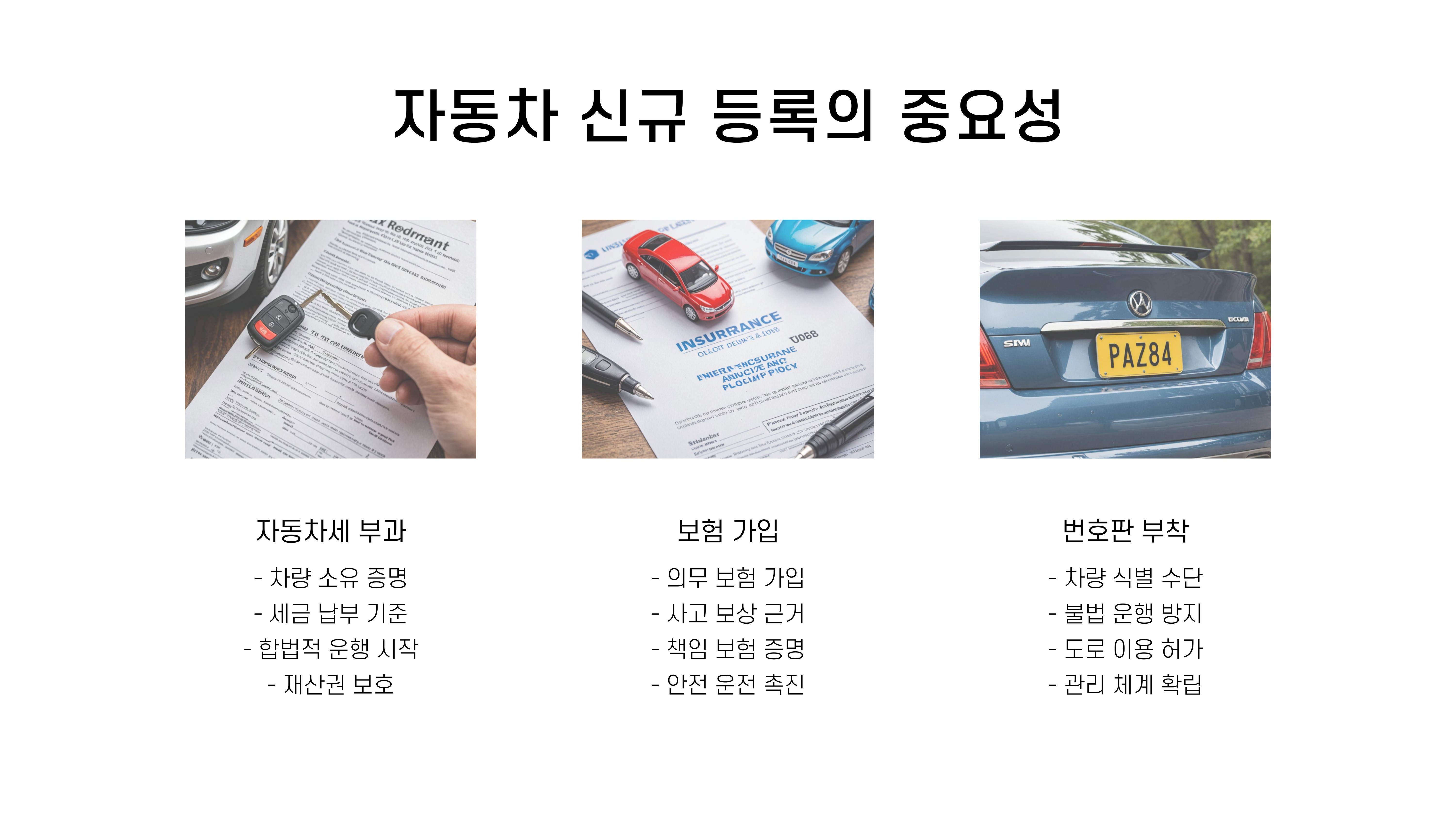 자동차 등록은 단순한 행정 절차를 넘어, 자동차세 부과, 보험 가입, 번호판 부착 등 운행을 위한 모든 법적 시작점이 되기 때문이죠.