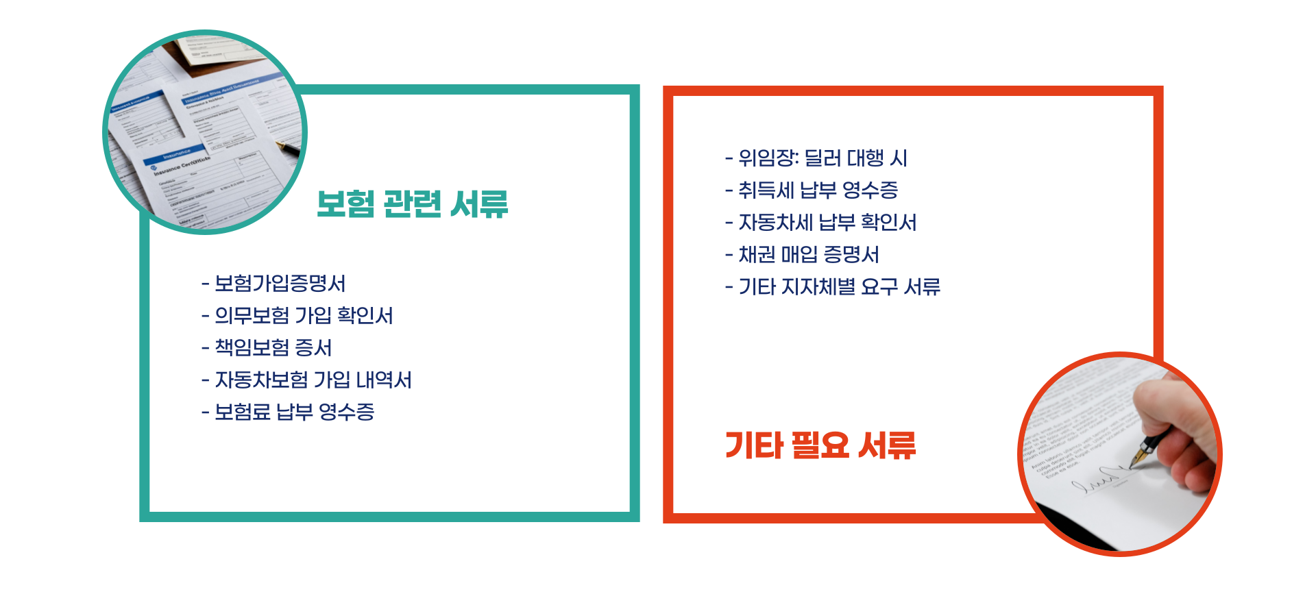 | 보험 | 자동차보험 가입 증명서 | 등록 이전 필수 제출 |