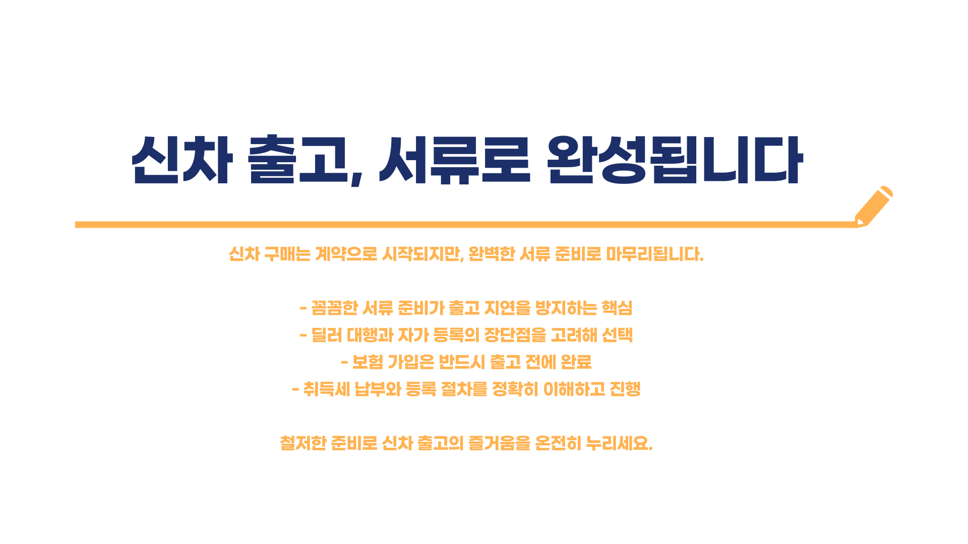 신차를 구매할 때 설렘도 잠시, 본격적인 인수까지는 꽤 다양한 서류와 절차가 필요합니다.