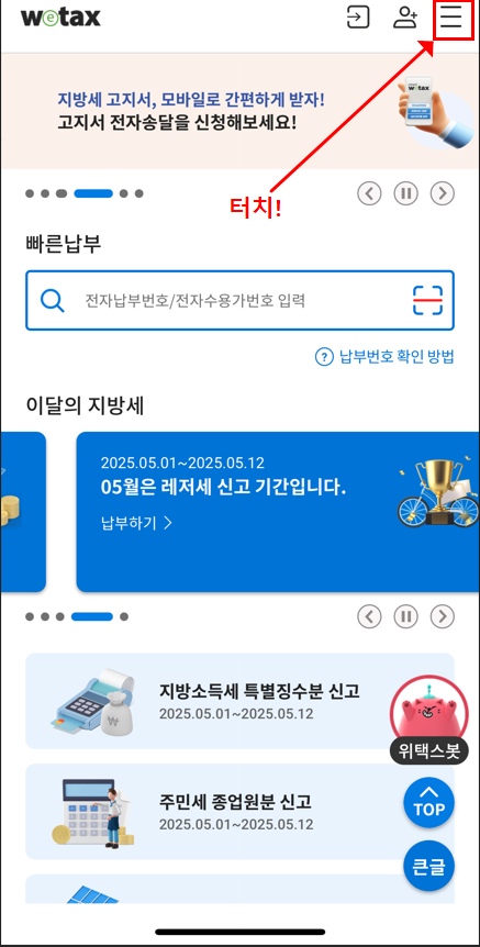 ▶ ‘스마트 위택스’ 또는 ‘지방세24’ 앱 설치