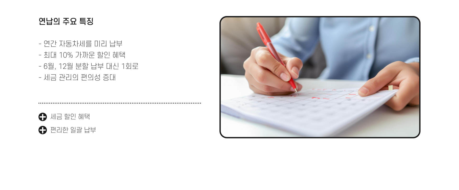 하지만 이 세금을 "1년에 한 번 미리 납부(연납)"하면 최대 10% 가까이 세금 할인을 받을 수 있다는 사실, 알고 계셨나요?