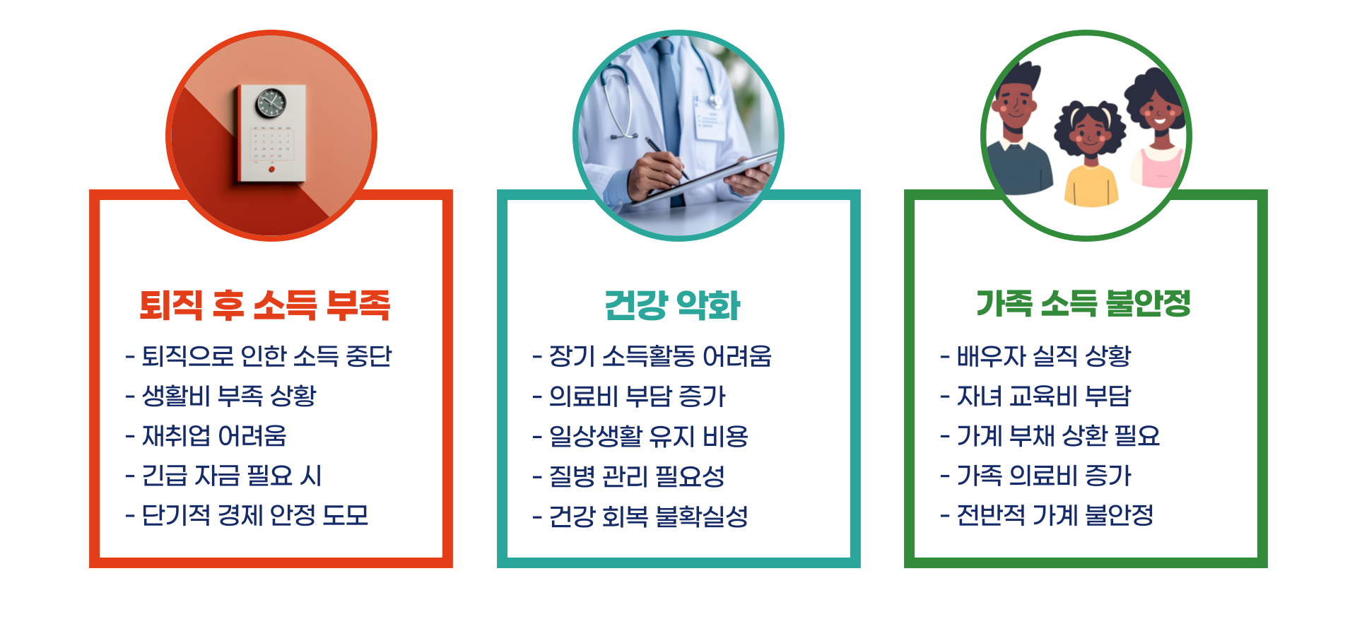 - 퇴직 후 당장 소득이 없거나 생활이 어려운 경우