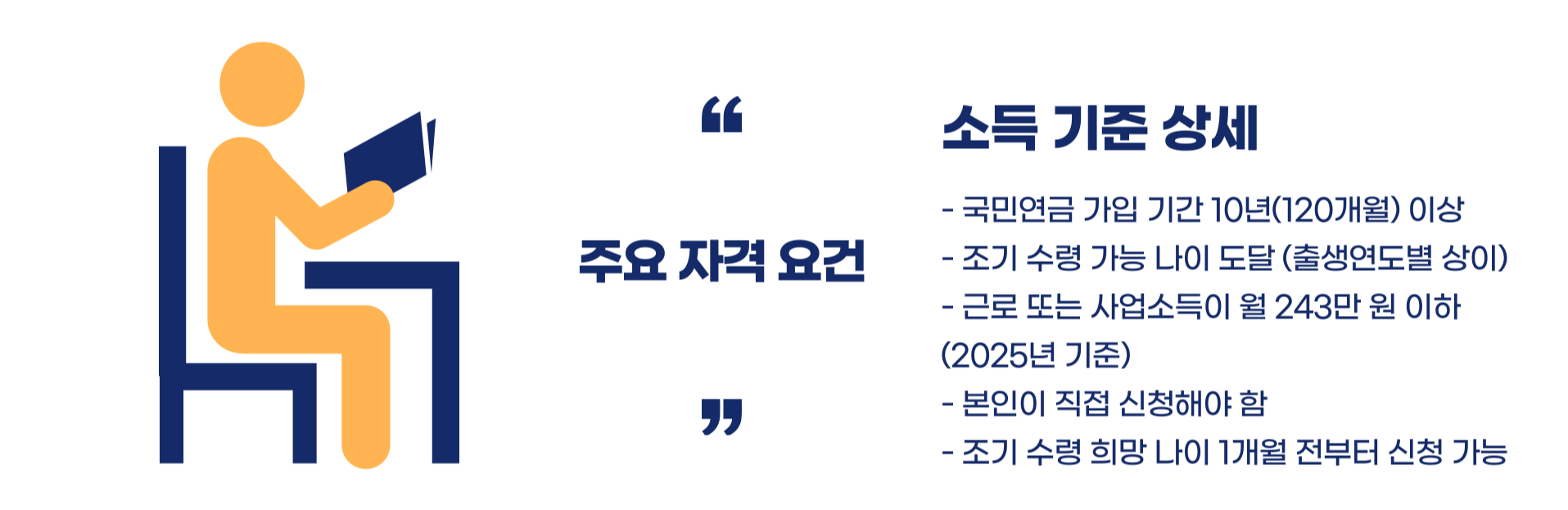 조기 수령은 아무나 할 수 있는 게 아니라, 아래 조건을 모두 충족해야 합니다: