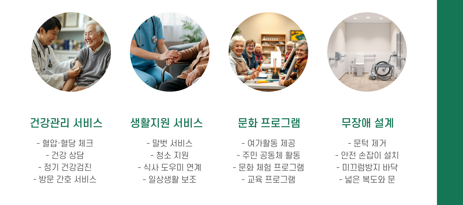 - 건강관리 서비스: 혈압·혈당 체크, 건강 상담 등